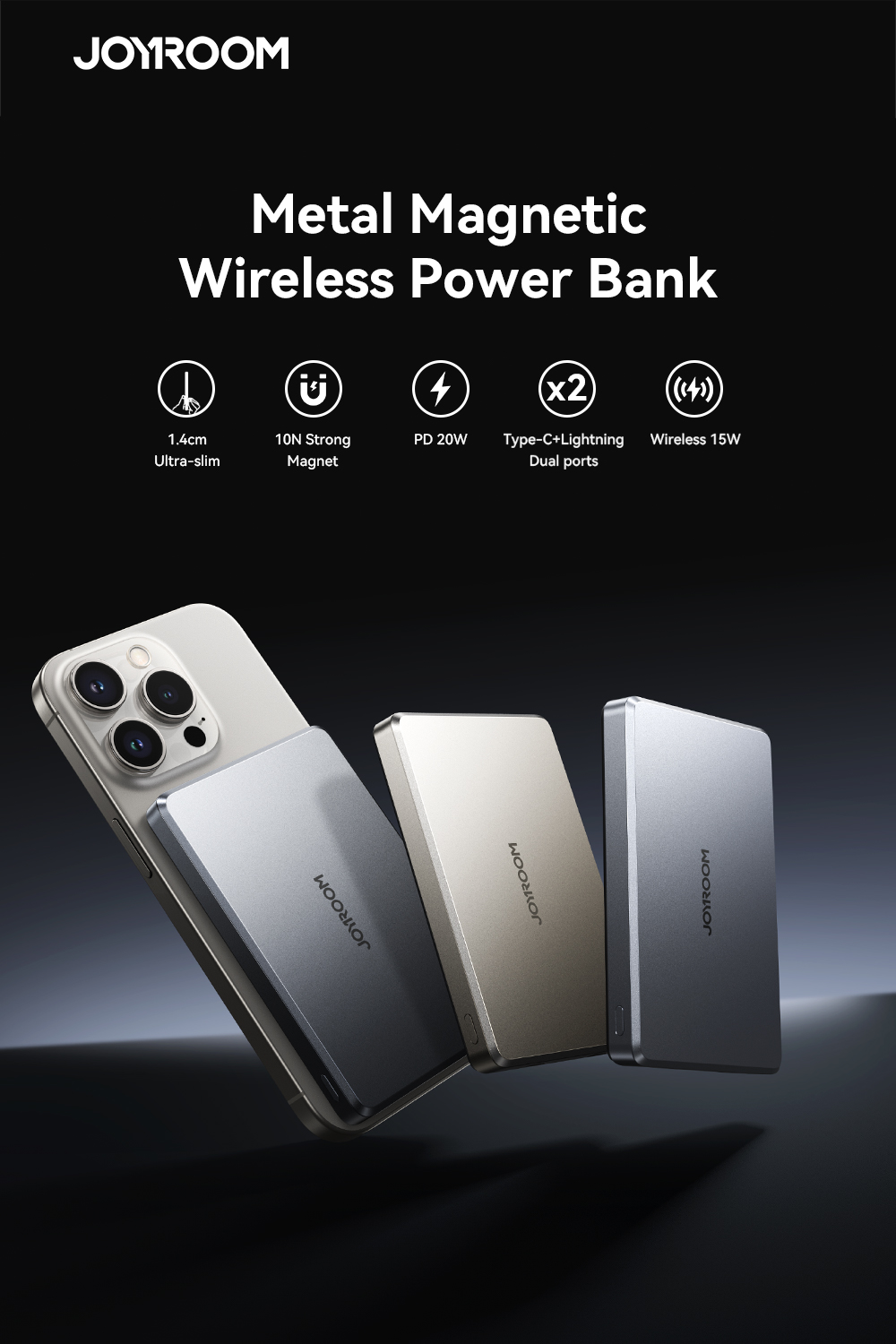 JR-PBM08 20W Ultra-Slim Metal Magnetic Wireless Power Bank 10000mAh-Space Grey With Type-C to Type-C 60W 0.25m Cable-Black
