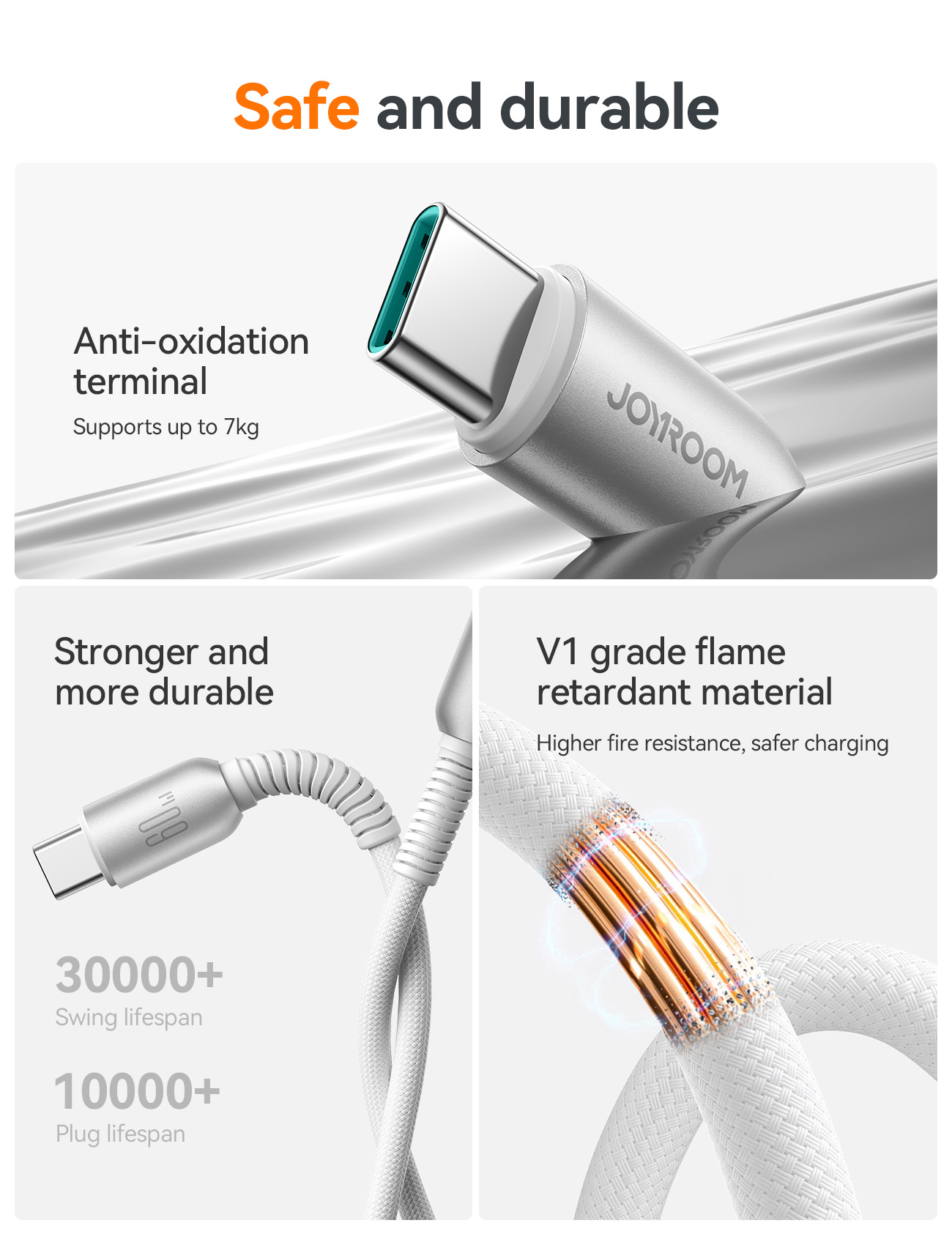Designed for power and performance, the Joyroom S-A51 USB-C to USB-C cable supports 3A fast charging and high-speed data transfer. Built with a 48-strand nylon braided exterior, spring-styled SR joints, and a thicker tinned copper core, it offers durability and efficiency. With over 30,000 bend lifespan and a stylish metallic finish, this 1.2m cable is ideal for charging smartphones, tablets, laptops, and other USB-C enabled devices with safety and style.