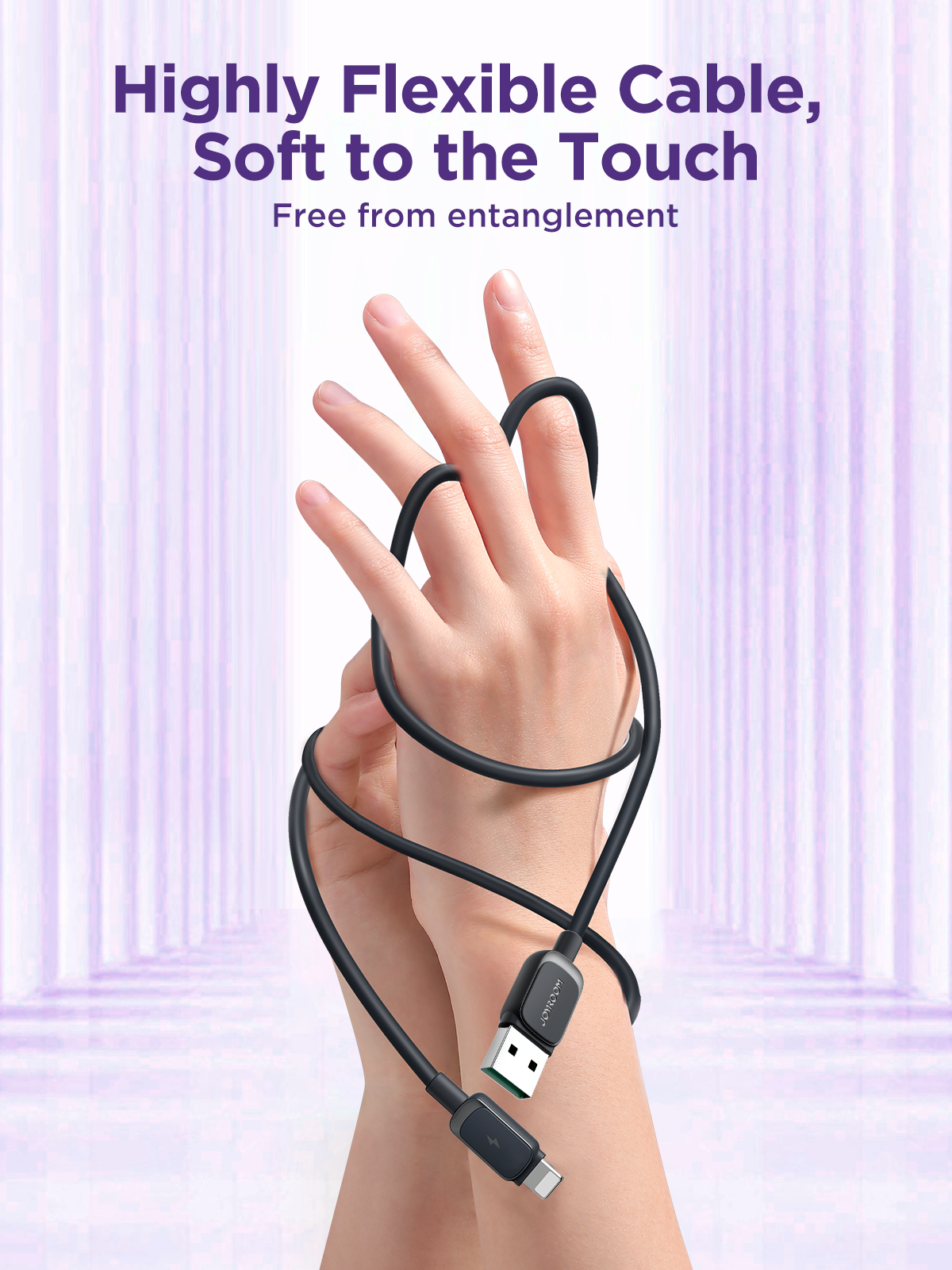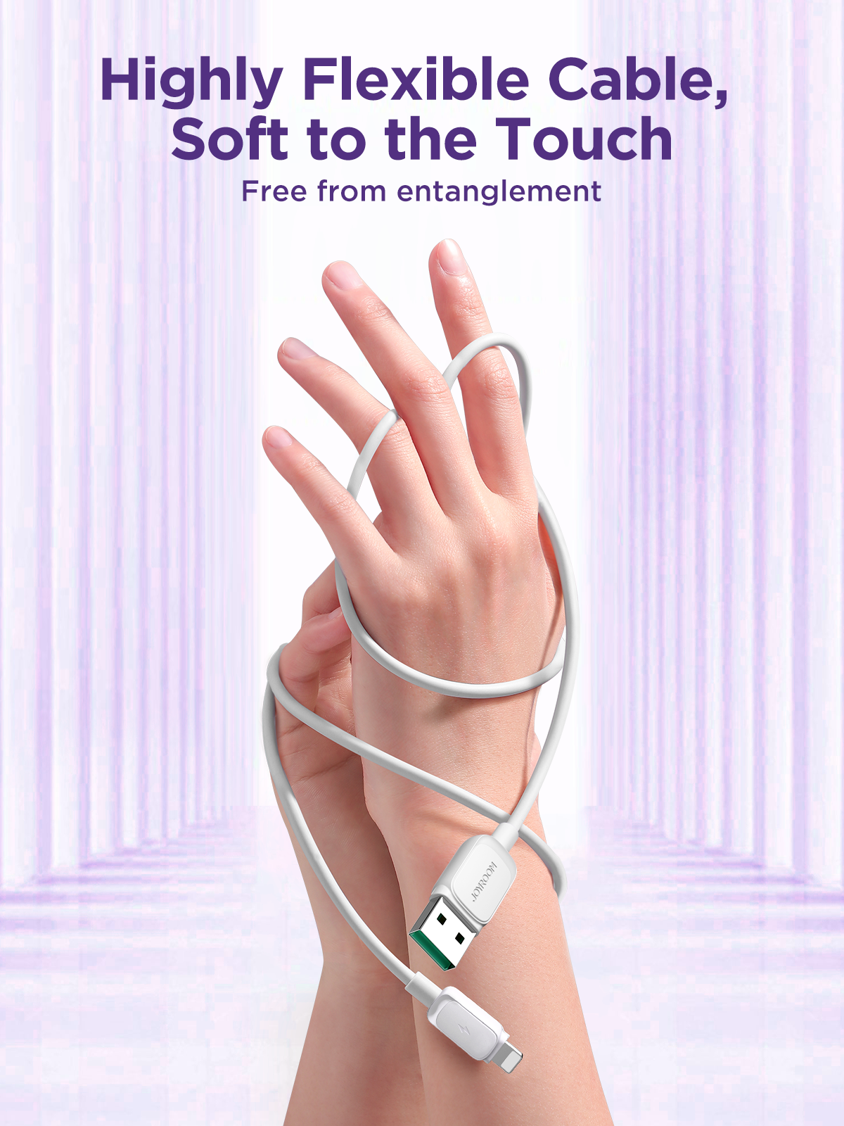 Enjoy fast and safe charging with the Joyroom S-A14, delivering 2.4A current and 480Mbps data transfer in a stylish Morandi white design. Made from durable TPE material, this 1.2m cable supports both charging and syncing with iPhones and Lightning devices. Its smart temperature control chip prevents overheating, ensuring battery safety. Comes with a built-in strap for easy storage, combining functionality with modern aesthetics—also available in black, purple, and blue.